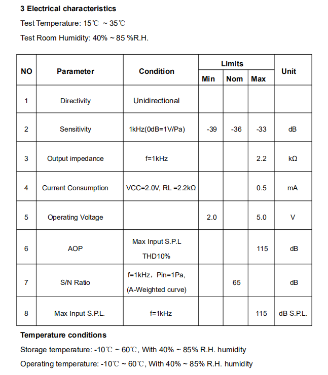 Total Harmonic Distortion: 94dB SPL@1kHz<1%