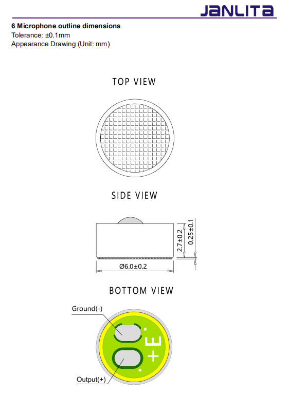 Total Harmonic Distortion: 94dB SPL@1kHz<1%
