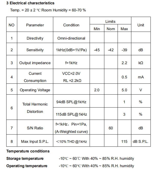 Total Harmonic Distortion: 94dB SPL@1kHz<1%